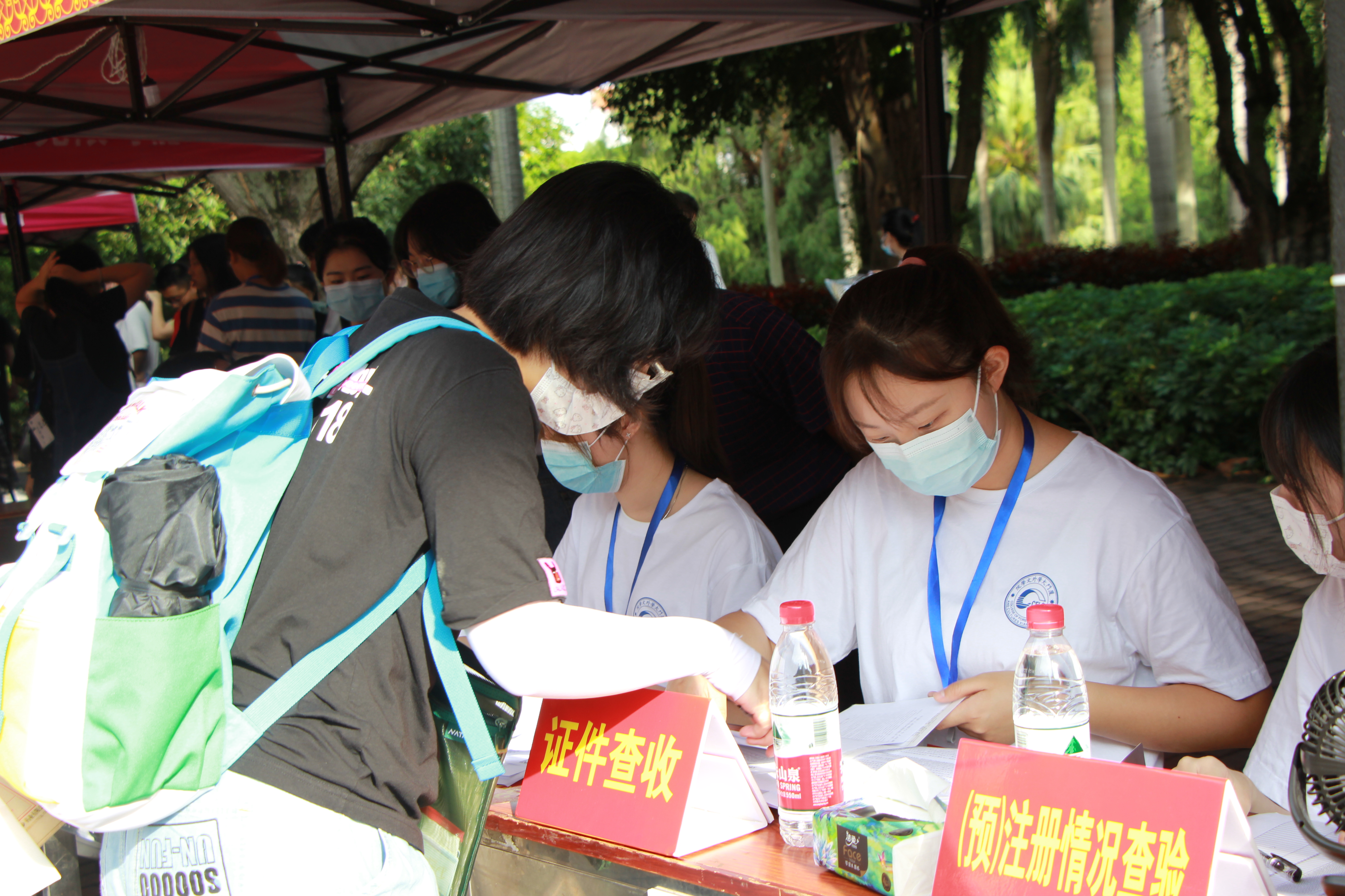 为确保迎新工作顺利开展,学院制定了详尽的工作方案,保证了入学、防疫两不误。迎新当日,志愿者们各司其职,迎新现场有条不紊。引导组志愿者耐心引导新生完成注册并入住宿舍;行李组志愿者认真看管和运输行李,为新生解除后顾之忧;注册组志愿者细致地为新生办理入学手续,分发相关材料;宣传组志愿者则用快门记录下一个个难忘的瞬间,为新生留下与厦园的第一张合影。同时,现场的老师们也热情地为新生答疑解惑,帮助新生尽快适应崭新的大学生活。