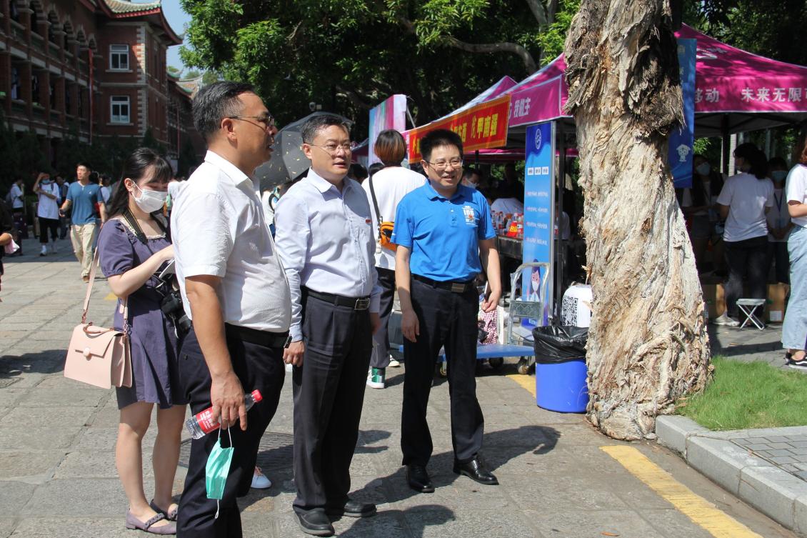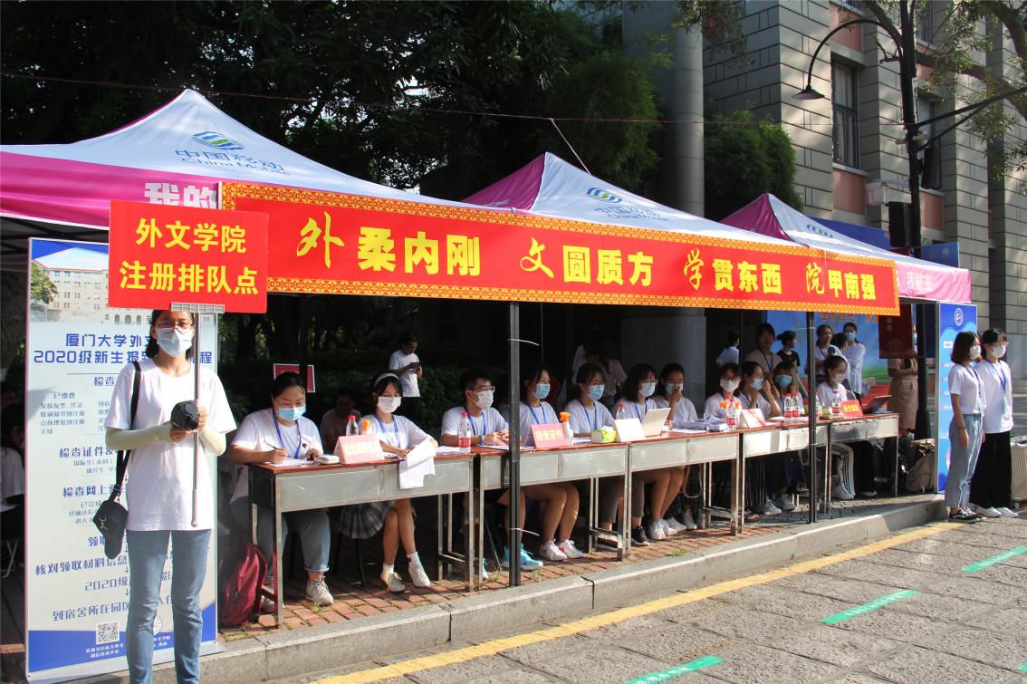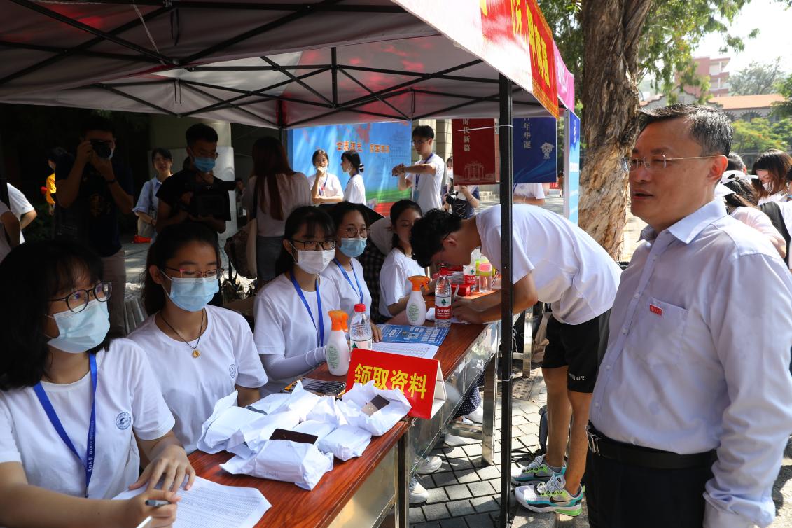 九月的风拂过鹭岛的碧波,凤凰花又缀满了枝头,9月10日至11日,温馨的外文大家庭迎来了三百多张新鲜的面孔,两天的迎新工作在学院师生的共同努力下圆满完成。迎新期间,厦门大学校长张荣一行莅临外文学院迎新点指导慰问,外文学院院长陈菁,党委副书记杨云良、沈丽秀,副院长徐琪、辛志英等赴现场指导工作,热烈欢迎新同学们的到来。