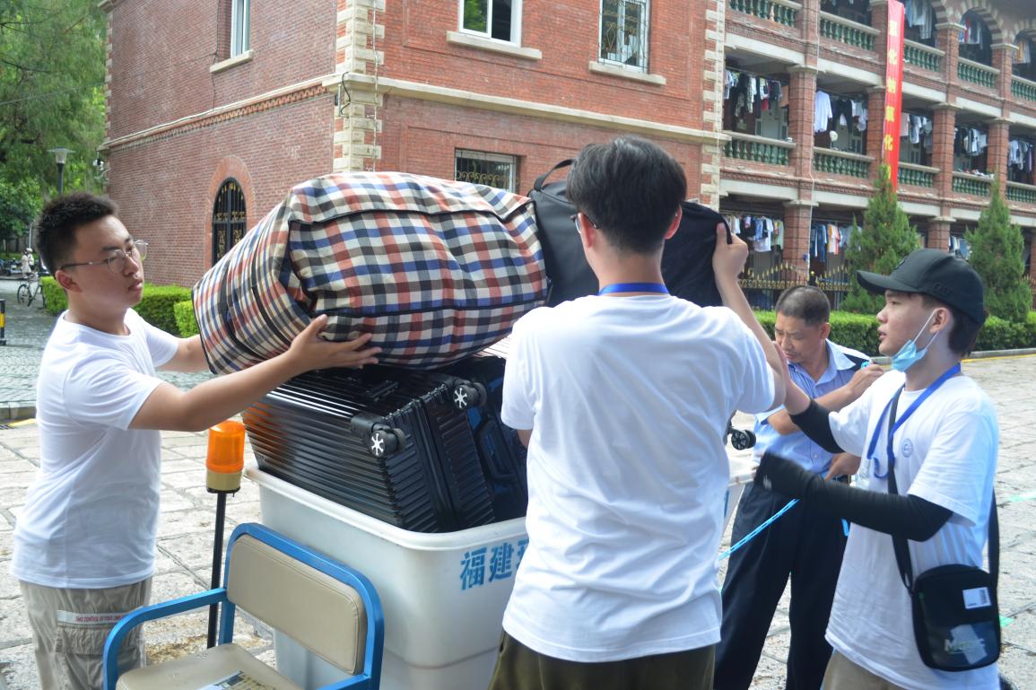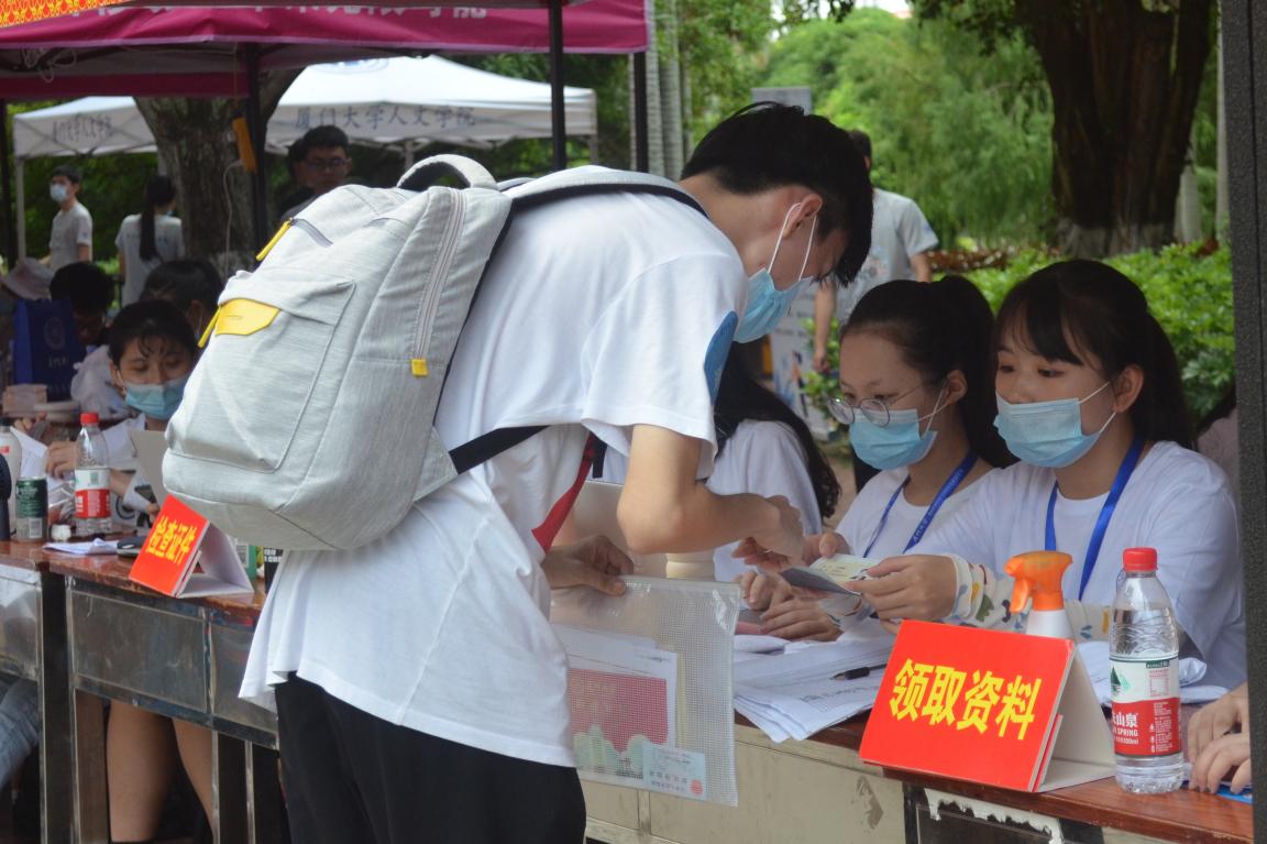 为确保迎新工作顺利开展,学院根据疫情防控需要,制定了详尽的工作方案,并在此前专门就各类可能出现的特殊情况进行了演练,做好了充足准备。迎新当日,志愿者们各司其职,热情投入。引导组的志愿者们早早便等候在各校门口,待新生们抵达校园后便热情地将他们逐一引导至学院迎新点,待完成注册手续后,又耐心引导其至宿舍园区,帮助新生尽早完成入住;守候在迎新点的注册组志愿者们耐心细致,核验新生信息、分发各类材料,更贴心地为每一位新生测量体温,送上防疫爱心包,并提醒他们保持安全距离、做好个人防护;行李组的志愿者们不辞辛劳,一趟趟地帮助新生们搬运行李,并周到地设立行李暂存点,妥善保管物品,免去了新生的后顾之忧;宣传组志愿者们则为新生们在迎新背景板前拍照留念,定格他们初入厦园的美好瞬间。现场的老师们也热情地为新生们答疑解惑,有序地帮助新生尽快完成注册。尽管烈日炎炎,中途突如其来的大雨也影响了大家的工作,但各组志愿者们始终从容不迫、干劲十足。