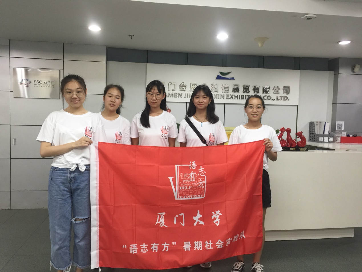 During the summer break, in order to explore the current market demand for voluntary language services and improve their quality, The CFLC “Linguistic Ambition” Summer Social Practice Group visited Xiamen Jinhongxin Exhibition Co. and Xiagang Sub-district Integrated Household Service Center for surveys and interviews.