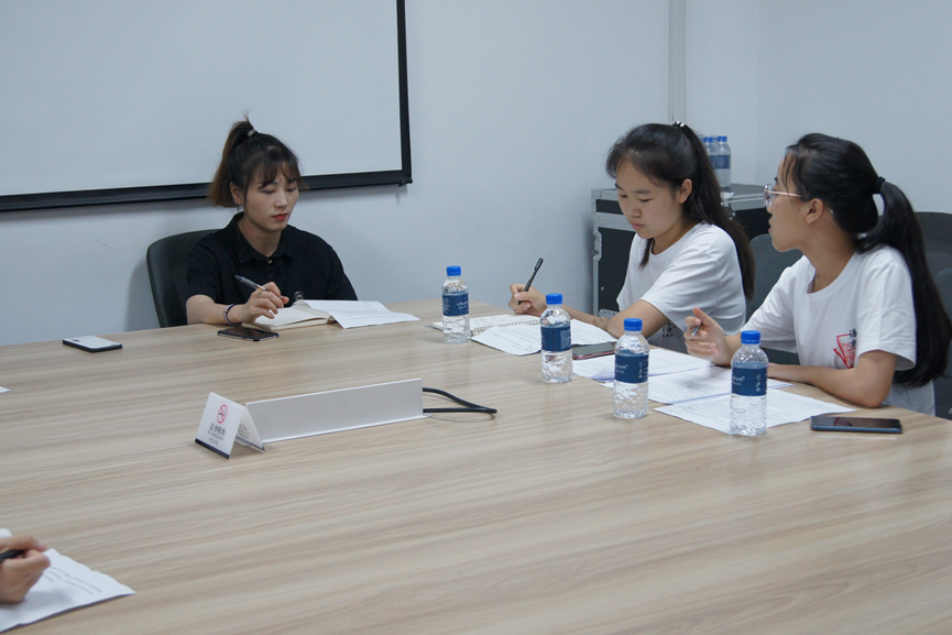 On July 8, the CFLC social practice group arrived at the office of Xiamen Jinhongxin Exhibition Co. Led by Ms. Zhang Yanting, head of the training program for foreign language volunteers at the 20th Xiamen International Stone Exhibition, the group conducted interviews to find out more about the recruitment of foreign language volunteers during the exhibition. According to Ms. Zhang, in recent years, stone exhibitions have seen an overall upward trend in the number of foreign language volunteers, especially for the Japanese and Korean languages, in which volunteers are often in short supply. Although the skill requirements for volunteers for stone exhibition are not very high, recruitment of foreign language volunteers is not easy due to the high turnover rates of volunteers. In addition, due to the service nature of voluntary work and the diversity of exhibition-related jobs, employers always stress the work attitude of volunteers, and thus having he right attitude is the first quality that volunteers are expected to possess.