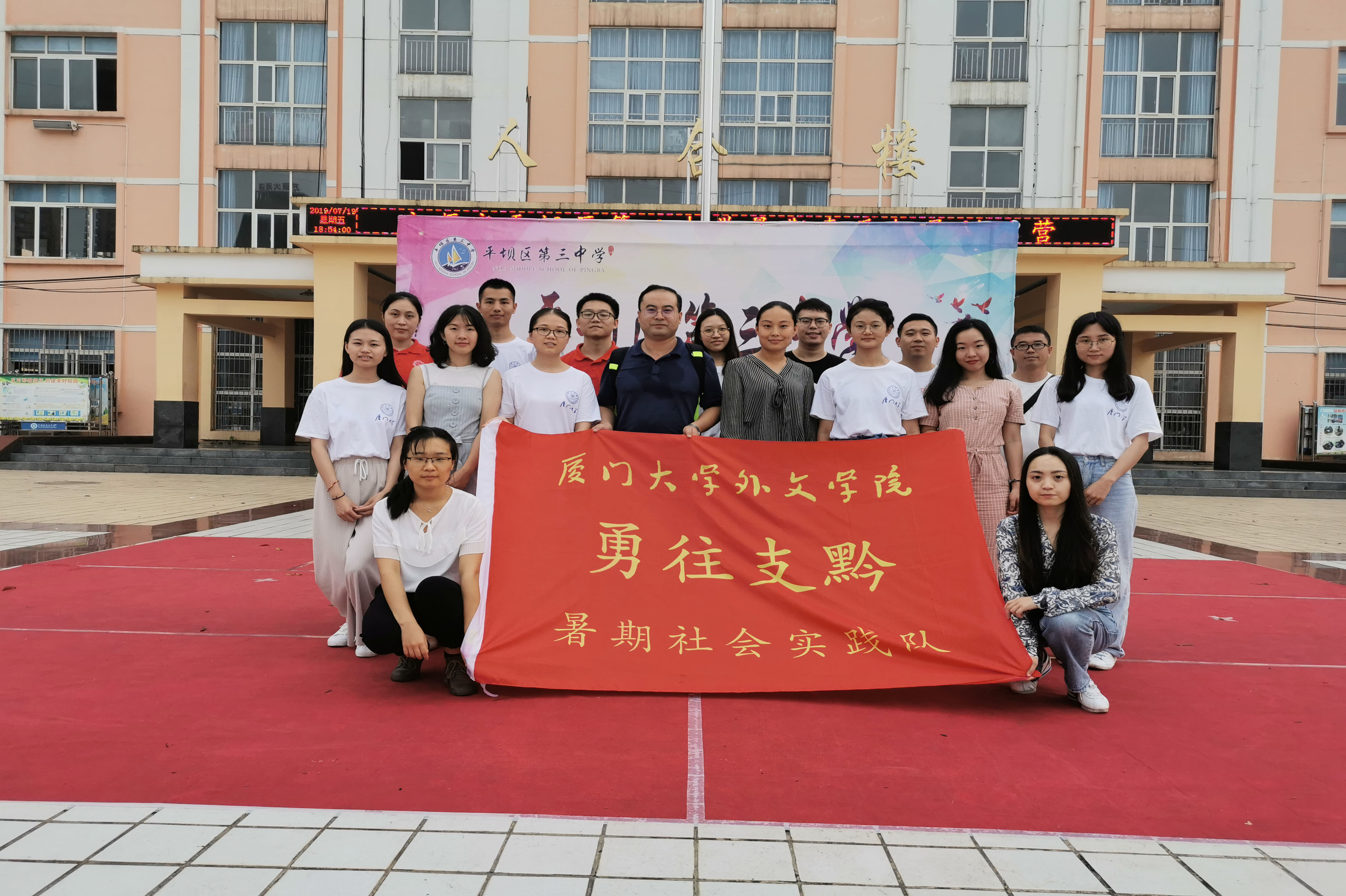 Although the knowledge taught by the social practice group was limited, their enthusiasm and energy for supporting education was unlimited. The social practice activities were conducted in a down-to-earth manner and produced fruitful results, not only giving full play to the professional advantages of foreign language students, but also bringing a different and vivid classroom experience to the students of Pingba No. 3 Middle School and broadening their horizons. Poverty alleviation is not about helping with money, but with intellectual support. High-quality education is fundamental to poverty alleviation and development.
