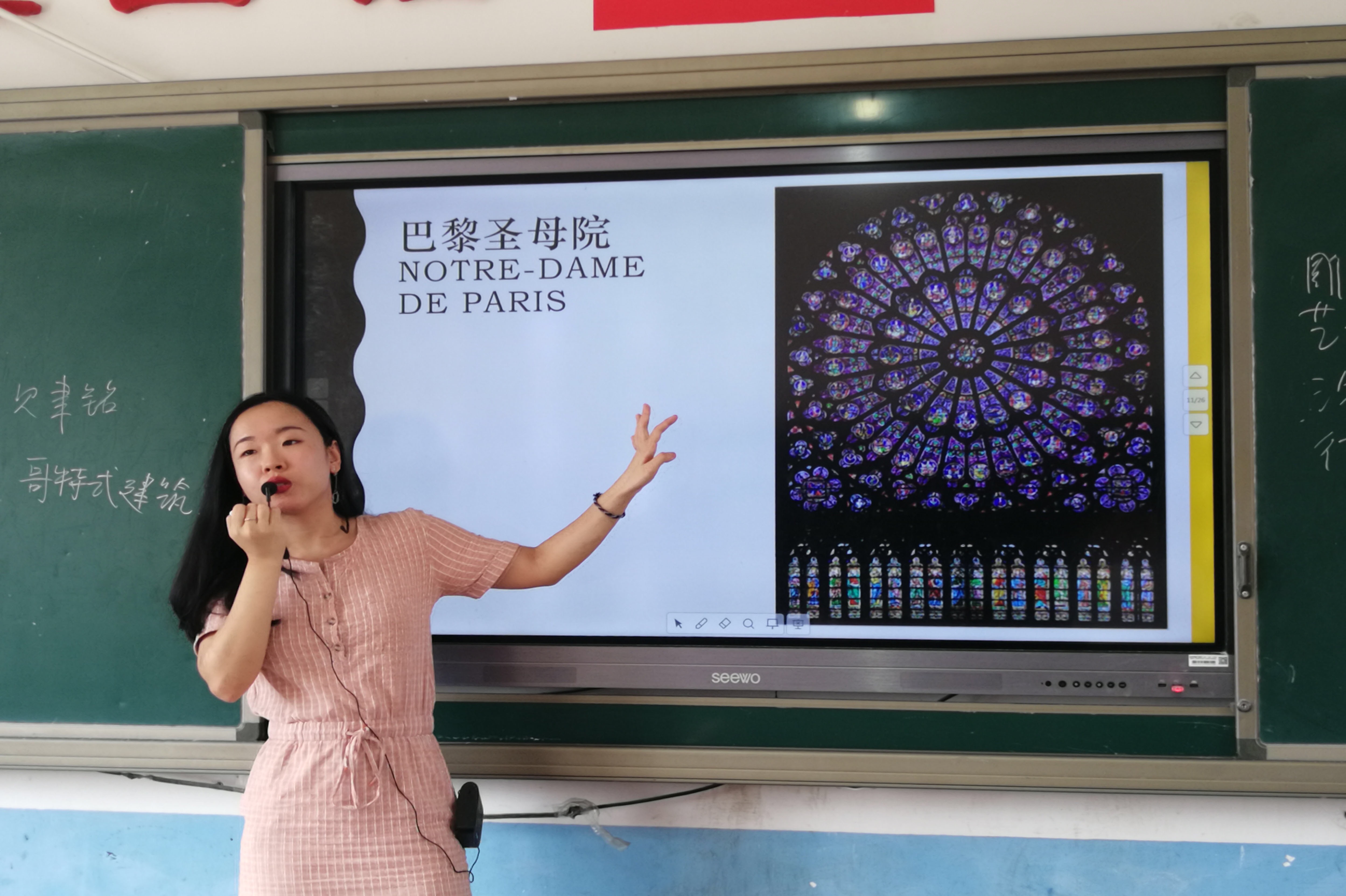 A member of the social practice group teaches the course of “European and American Culture and Tourism” for the students.