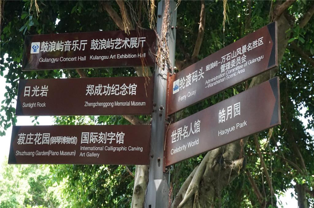 In response to the “Belt and Road Initiative” and to deepen cultural exchanges between China and foreign countries with tourism as the medium, the CFLC “English Overtone” Summer Social Practice Group recently investigated the public signage on the Kulangsu islet, one of the most popular tourist attractions in Fujian Province. The group was divided into three teams to look at the public signage at the Bright Moon Garden and the Organ Museum and along the roadways.