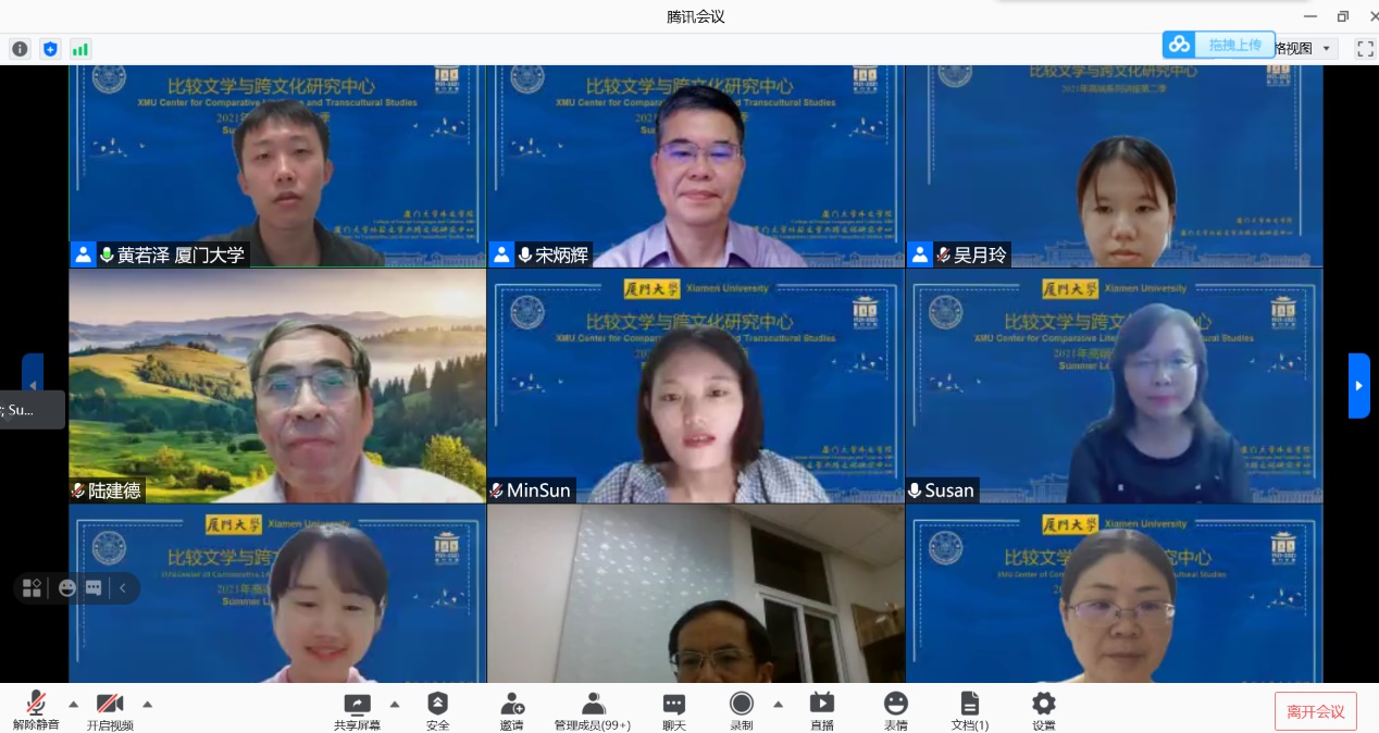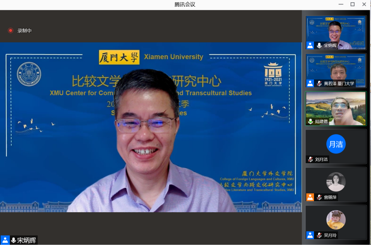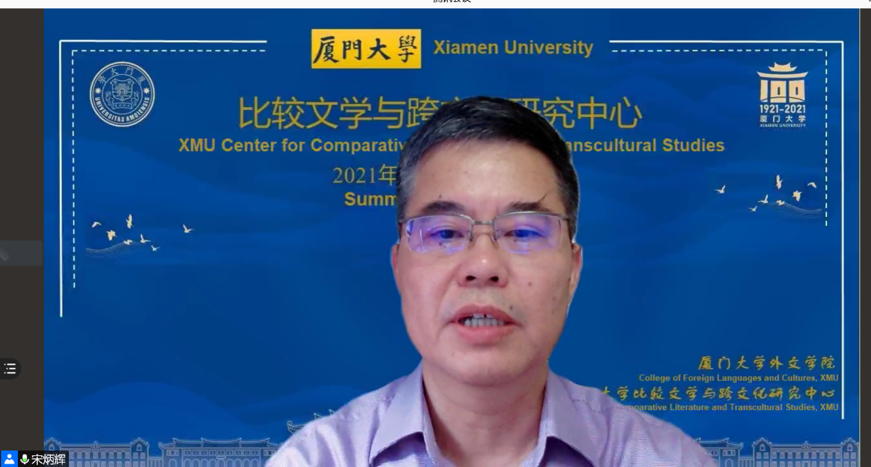7月9日晚,上海外国语大学二级教授、《中国比较文学》主编、中国比较文学学会副会长宋炳辉教授受邀为厦门大学比较文学与跨文化研究中心高端系列讲座第二季第三讲开讲。第三讲的主题为“借镜与创新:中外文学关系研究方法的一点思考”。讲座采取线上直播的形式,由厦门大学比较文学与跨文化研究中心成员黄若泽助理教授主持,吸引了各校师生的积极参与,反响热烈。在这一讲中,宋炳辉教授从学科理论和方法论角度切入,结合鲁迅和果戈理关系视阈中的《狂人日记》这一典型案例,就中外文学关系研究如何展开提出精妙见解,重点指出文学关系的呈现应进入文学与文化的创造领域,相应的研究方法也应进入创造性阐释层面。