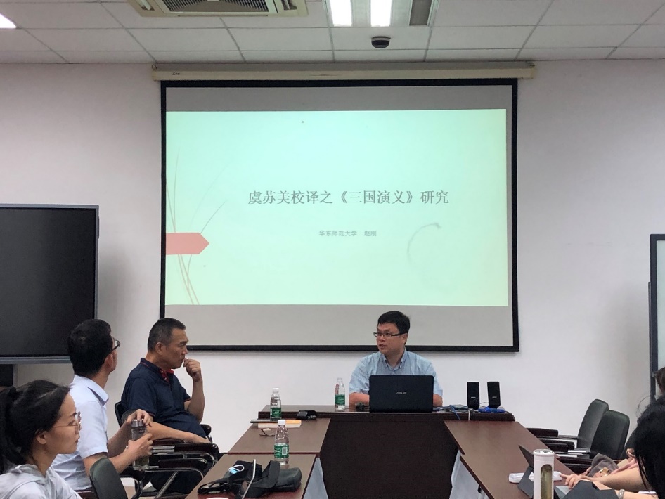 2021年7月7日晚,华东师范大学外语学院赵刚教授为外文学院师生举办了题为“虞苏美校译之《三国演义》研究”的学术讲座,讲座由外文学院英语系主任杨士焯教授主持。