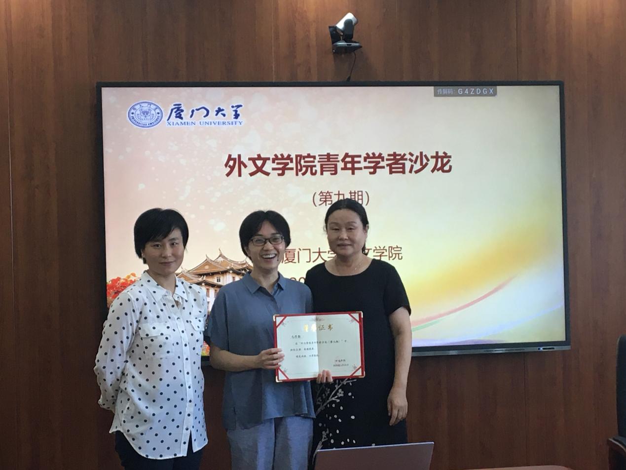 为促进青年教师专业发展,提高青年教师教育教学、科研水平,提供学术分享、交流和共同成长的平台,5月26日下午,厦门大学外文学院第九期青年学者沙龙活动于德贞楼515会议室顺利举行。活动由顾鸿飞教授主持,青年教师毛学勤应邀担任本次活动主讲人,刘悦教授任点评嘉宾并为毛学勤老师颁发证书。