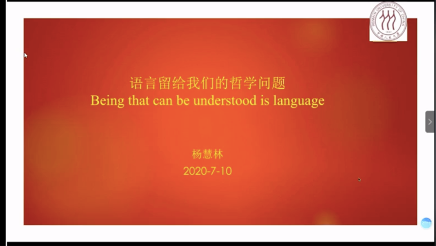 2020年7月10日,厦门大学比较文学与跨文化研究中心2020年高端讲座第一季第四讲邀请到中国人民大学杨慧林教授带来题为“语言留给我们的哲学问题”的讲座。本次讲座由中心执行副主任苏欲晓教授主持,在腾讯会议、视友、B站等平台进行现场直播,中心成员与各平台观众齐聚云端,见证了一场精彩绝伦的学术讲座和对话。