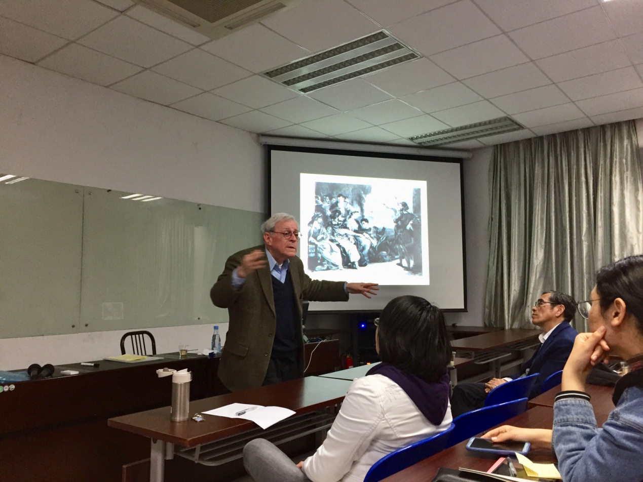 在讲座中斯通教授的讲解深入浅出,语言生动幽默,让听众们享受了一次法国浪漫主义画派的视觉盛宴。斯通教授不仅在文学研究中成果丰硕,对绘画艺术的热情和投入令人极为敬佩。怀着对中国深深的热爱,斯通教授以78岁高龄仍在中国从事一线教学工作的极大热情使在场师生们感动不已。