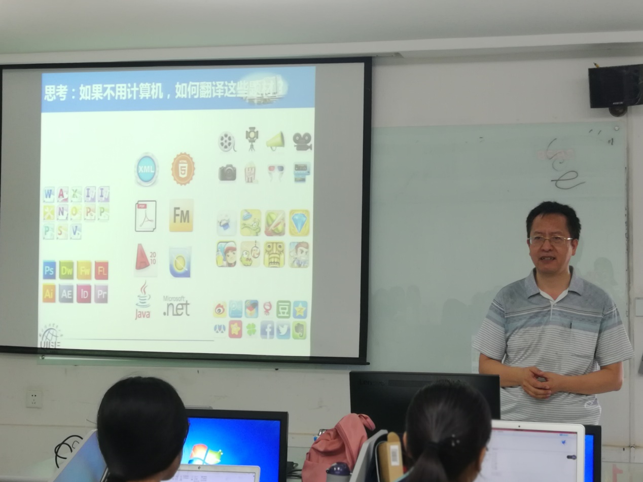 7月,我院邀请对外经济贸易大学崔启亮老师来我校讲学。此次,崔启亮老师开设《计算机辅助翻译》和《翻译项目管理》课程,并作了《从语言服务市场需求谈高校MTI课程学习与职业发展》讲座,为广大师生答疑解惑,提供了认识翻译、学习翻译的新方法和新工具。