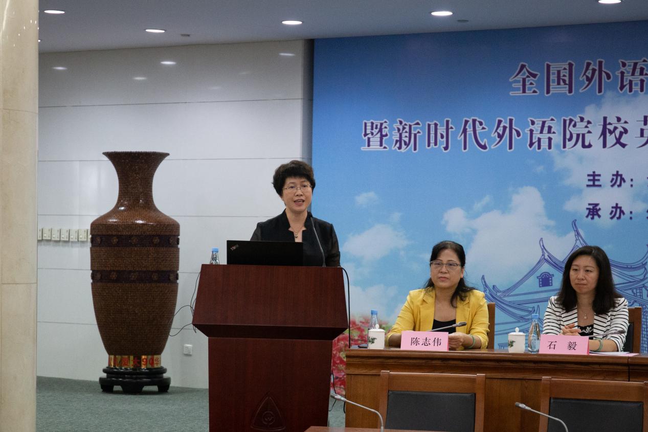 陈菁院长在致辞中对各位专家的到来表示欢迎,并简要介绍外文学院及英语语言文学系的发展历程及现状。她表示,此次联席会议的举办离不开全国英语专业教学指导分委员会、外交学院的精诚合作,希望与会专家和领导能够深入交流探讨,增进友谊,收获满满。
