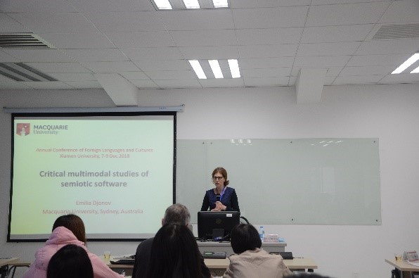 12月8日上午8点,研讨会在德贞楼112报告厅隆重开幕。华东师范大学外国语学院教授金衡山,上海外国语大学教授李维屏,南京大学外国语学院教授刘成富,北京市社会科学院研究员张泉,麦考瑞大学教授Emilia Djonov,厦门大学外文学院党委书记陈志伟,院长陈菁,党委副书记沈丽秀,副院长辛志英,欧语系主任顾鸿飞,英语系副主任林斌、戴鸿斌,外语教学部副主任胡永洪,日语系副主任马英萍,欧语系副主任方厚升等嘉宾出席开幕式。开幕式由厦门大学外文学院党委副书记沈丽秀主持。