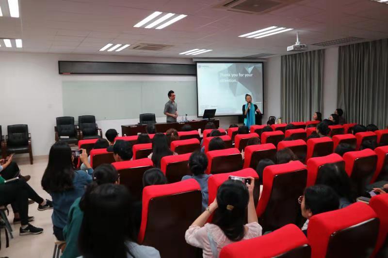 在问答环节,同学们积极提问,分享交流。最后,外文学院肖晓燕教授总结了本次讲座,鼓励大家在积累了一定的口笔译实践经验后,积极投身于口笔译学术研究。