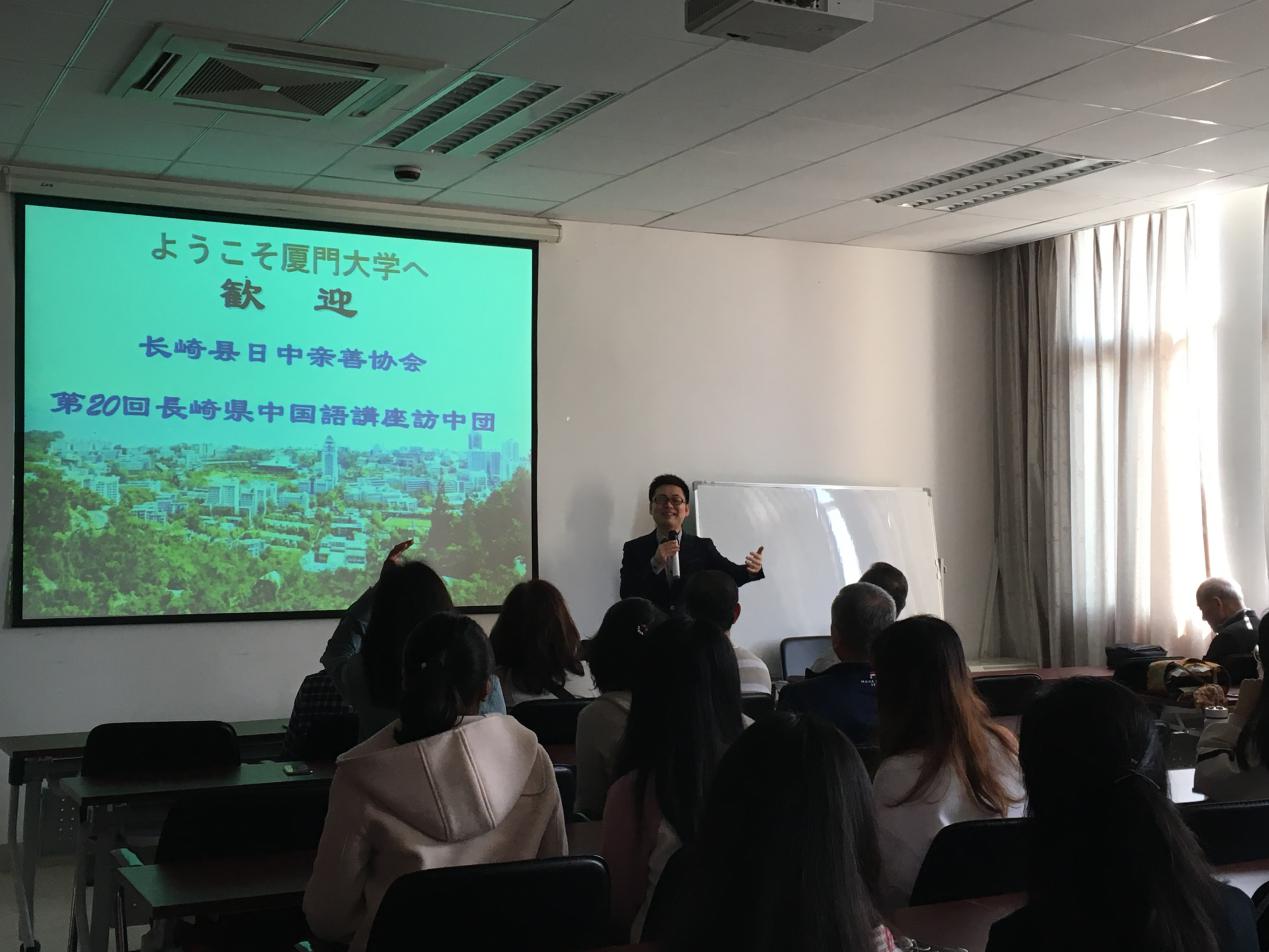 2018年3月24日,应厦门市人民对外友好协会邀请,日本长崎县日中亲善协会组织的“第20届长崎县汉语讲座学生代表团”一行15人莅临厦门,与我院日语系师生进行交流,并与同学生们一起参观了美丽的校园。