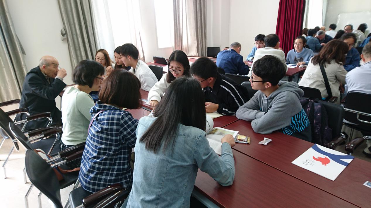 之后,学生们与代表团分为几个小组进行了语言学习的交流,同学们帮助来宾如何更好地学习汉语,同时积极传播厦门大学乃至中华悠久历史与传统文化。嘉宾们也积极帮助同学们纠正日语发音以及表达错误等,传达自己作为代表团一员的友好之情。代表团中最年长的吉川雄幸先生已经82岁高龄了。17年前曾任我院日语系的外籍教师。吉川老师与同学们分享了他当年在厦大的点点滴滴。