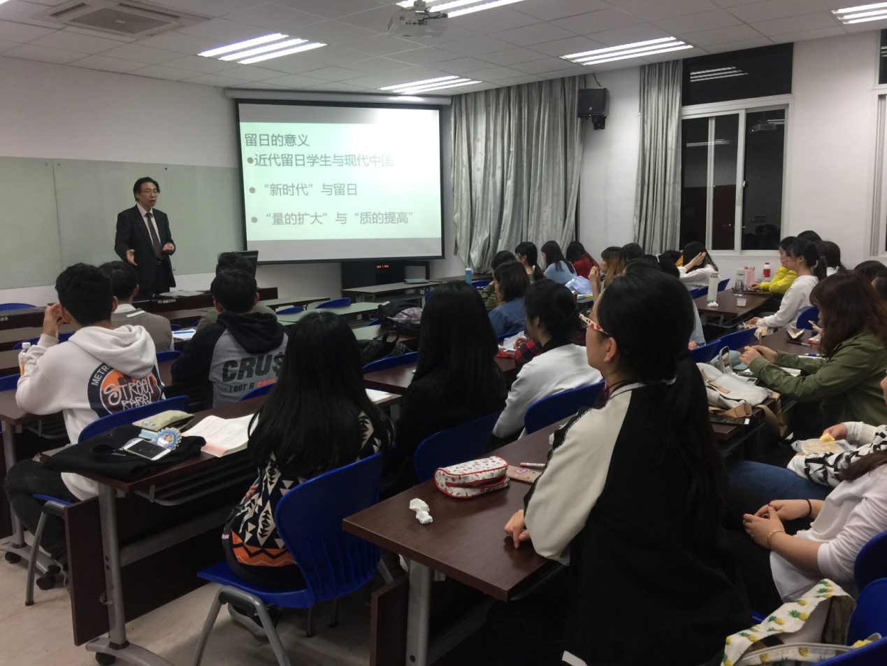 讲座一开始,刘教授阐述了近代留日学生与现代中国的密切关系,紧接着就“新时代与日本留学”做了精彩讲解。刘教授通过对比介绍中日研究生院招生方式,利用大数据剖析了日本国内考研情况、日本大学院外国留学生入学的现状,为同学们思索如何留学考研提供了大量的信息和宝贵的建议。