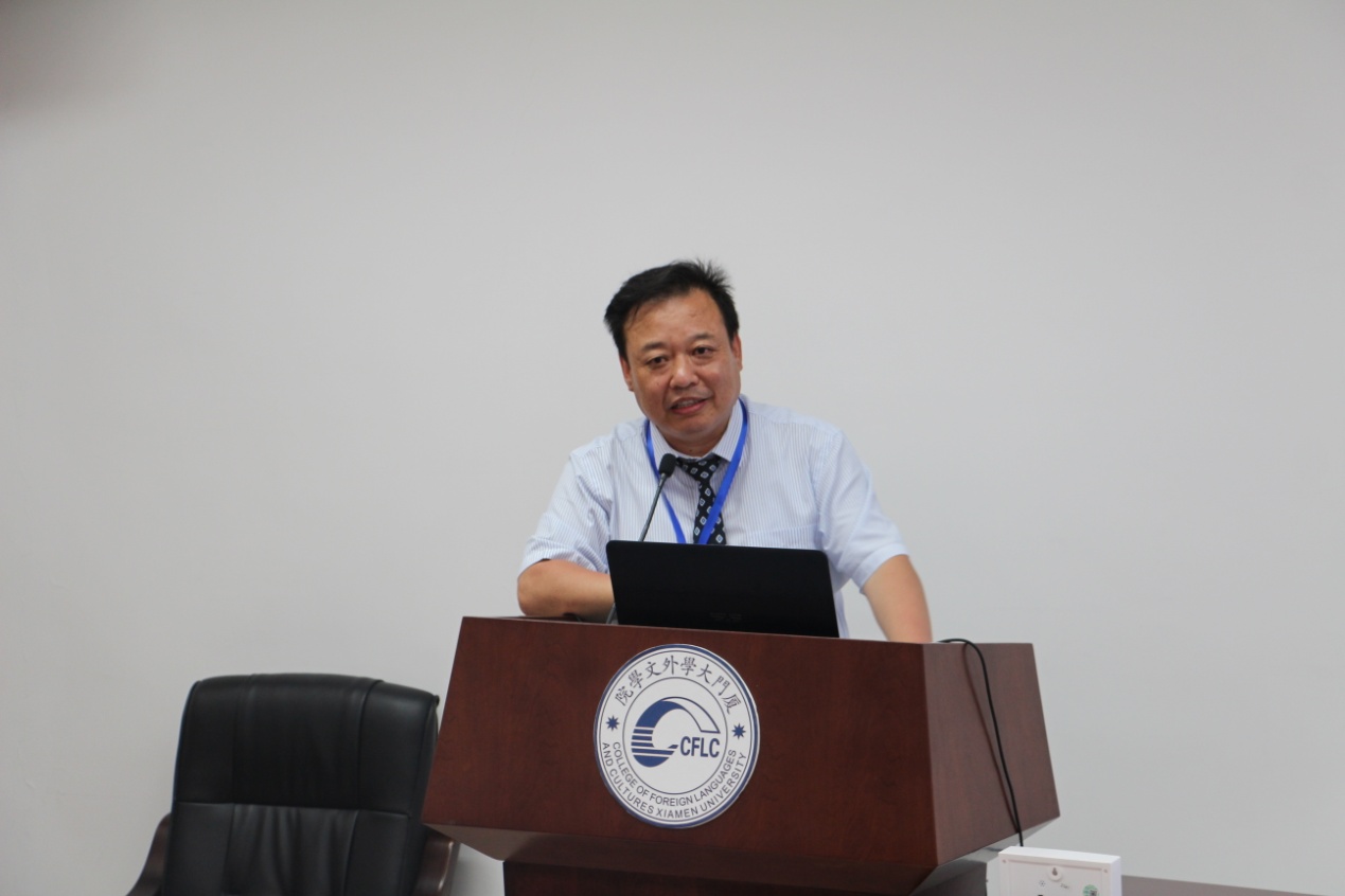 厦门大学外文学院张龙海院长首先致开幕辞。张院长代表学院向所有远道而来的嘉宾表示热烈的欢迎,并致以诚挚的感谢。他指出,正是由于各兄弟院校的支持,厦门大学外文学院才得以不断前进。他表示,本次“院长论坛”的初衷在于搭建一个平台,使得各个高校的教授学者们能够共聚一堂,基于不同校情院情、科研经历、管理经验,在交流中碰撞出思想的火花,互相借鉴、共同进步。