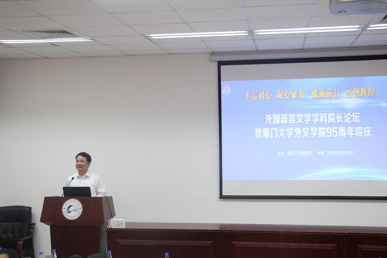 4月14日下午2点半,以“不忘初心,凝心聚力,砥砺前行,再创辉煌”为主题的外国语言文学学科院长论坛在德贞楼112报告厅举行。时值厦门大学外文学院95周年院庆之际,外文学院邀请众多兄弟高校外国语学院院长们前来,同庆学院华诞,共商发展大计。