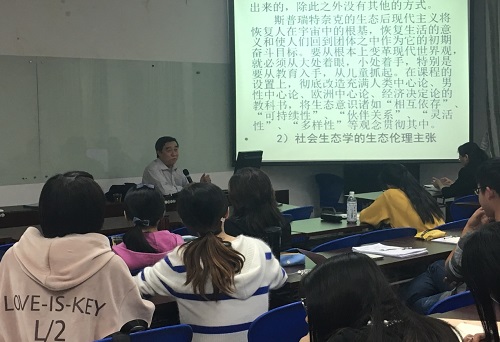 陈世丹教授首先通过伦理学的两个最基本的概念引入今天的讲座主题,分别介绍了伦理和道德的内涵。之后,他谈到了后现代西方伦理学的核心思想,总结了后现代对现代性和现代西方伦理学的批判性超越。陈教授指出,后现代主义区别于现代主义的本质就在于后现代承认并尊重现代主义所忽略的差异和他者。随后,他从德里达对现代性形而上学的解构出发,相继探讨了德里达的弥赛亚精神和其正义观,阐明了后现代伦理学对后现代道德价值体系的重建。接着,通过探讨列维纳斯为他人的人道主义,陈教授再次强调,承认差异、尊重他者,承担对他者的绝对的责任,对于指导后现代时期个体和人类共同体的行为正在发挥极为重要的作用。不仅如此,陈教授还进一步将后现代伦理学的探讨扩展到社会生态学领域,指出重建个人与自然的协同进步关系的重要价值。最后,他对与后现代伦理主张一致的后现代伦理的叙事也做了深入探讨。