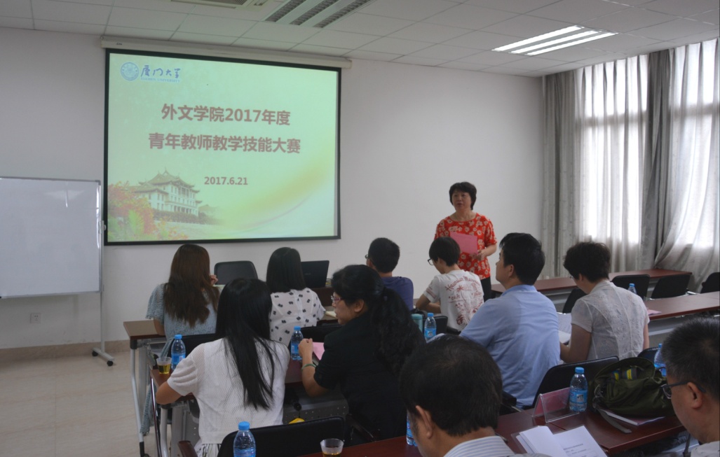 为了提高教师教学组织能力、展示青年教师教学风采、培养优秀青年教学骨干,外文学院于6月21日上午在南光三319举办了2017年度青年教师教学技能大赛。