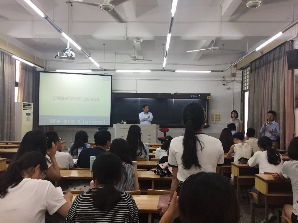 讲座中,对马先生以Clarion(歌乐)公司为例,向同学讲述了日本企业文化。