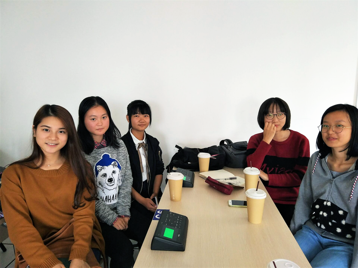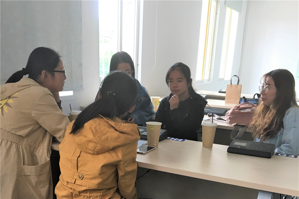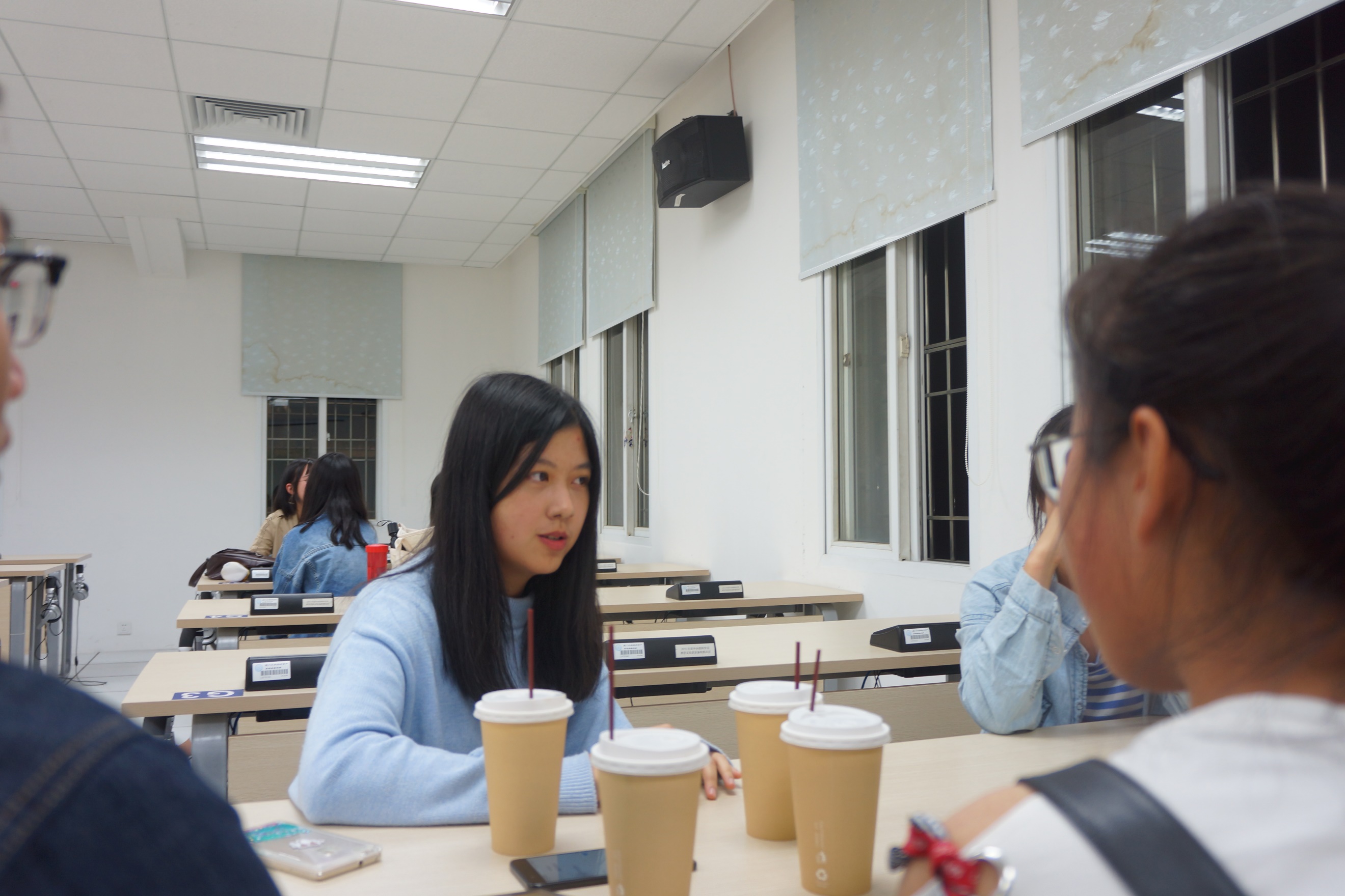2015级日语专业本科生谭铮铮(右一)与同学们分享经验