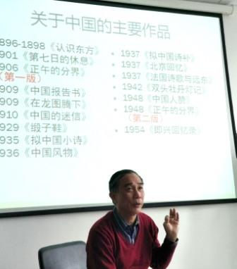 余教授首先从“克洛岱尔是谁?”谈起,先介绍了克洛岱尔研究在中国的历史与现状,然后由浅入深地向大家讲述了身为大使的克洛岱尔与中国的深厚渊源以及中国传统文化对其创作的影响。接着,余教授从亲身经历谈起,向大家介绍了他自上世纪80年代以来针对克洛岱尔所做的译介与研究,并强调从其作品中所注意到的克洛岱尔与中国的密切关系。然后,余教授又从比较文学角度、宗教的角度、诗学的角度分析当下克洛岱尔研究的几个视角,并着重解析了中国读者对克洛岱尔感到相对陌生的原因。最后,余教授总结了克洛岱尔对法国文学家的影响以及今后克洛岱尔研究的几个可能的发展方向。