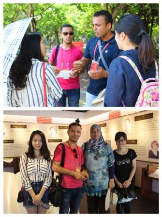 7月15日上午9时,在我院实践教育基地福建海洋研究所参加培训的20名来自突尼斯的海洋渔业官员参观厦门大学,并与法语系师生进行交流研讨活动,旨在促进中非之间的友好合作与深入交流。来自法语系2014级的20余名学生志愿者全程参加了接待陪同外宾的工作。 首先,外宾们来到了外文学院南光三415会议室。3名法语系同学向外宾们图文并茂地介绍了厦门大学和厦大法语系并播放了厦门大学95周年校庆纪录片。最让外宾们感到惊喜的是,法语系的学生们还带来了精彩的歌唱表演,给他们留下了深刻的印象。教室里气氛活跃,互动不断。在介绍展示的最后,1名外宾作为代表上台发言,表达了来到厦门大学进行文化交流的喜悦与荣幸和对法语系学生的惊叹和赞扬。介绍环节结束后,外宾与志愿者们在外文学院院楼前合影留念。 随后,每名外宾由1位志愿者带领,陪同参观厦大校园。志愿者们带领外宾参观了群贤楼群,在校史长廊中向外宾们讲述了厦大校史,同时双方交流了两国之间文化教育的差异。在聆听中,外宾们对校主陈嘉庚先生表达了敬仰之情,纷纷与陈嘉庚先生的雕像合影留念。接着,一行人来到上弦场,看到正在进行足球比赛的少年们,几位外宾跃跃欲试,也加入了踢球的行列中,与同学们小小切磋了一把。经过芙蓉湖时,外宾们更是被翠树环绕、碧波荡漾的美景所折服,流连忘返。 中午,外宾们来到东苑餐厅,品尝中国美食,体验不同地域的饮食文化。午饭后,外宾们进入了芙蓉隧道观光游览,志愿者们耐心地解释了不同喷绘的含义,外宾们不禁连连称赞彩绘的精美和富有创造力,对厦大校园文化产生了更加浓厚的兴趣。 此次文化交流活动不仅使远道而来的非洲友人们对厦门大学有了更深刻的了解,感受到了厦大师生们的热情与友好,体会到中国文化的丰富多彩与兼收并蓄,同时也提高了志愿者们的语言水平和接待能力,感受到不同文化间碰撞交流所产生的奇妙反应。