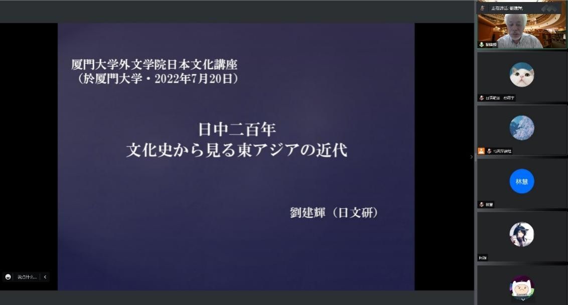 2022年7月20日,日本京都国际日本文化研究所刘建辉教授应邀为外文学院师生作题为“中日二百年——从文化史看东亚的近代”的线上讲座。讲座由日语系马英萍副教授主持。