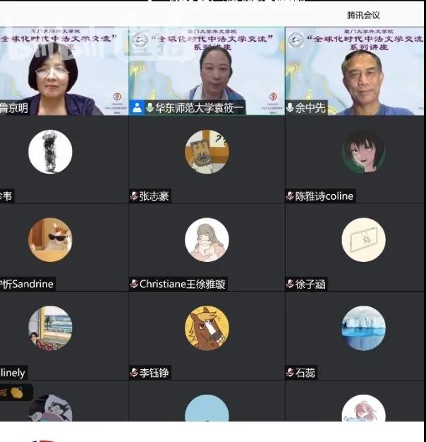 讲座的最后,袁筱一教授与余中先教授、鲁京明教授共同探讨了新世纪法语文学的走向,并为听众们做了精彩的总结。在几位教授的梳理和启发下,与会的老师和同学们都收获颇丰。至此,由厦门大学外文学院“全球化时代中法人文交流模式新探”课题组举办的“全球化时代中法文学交流”系列讲座的第一讲圆满完成,在此过程中,1200多位听众汇聚云端聆听袁筱一教授的精彩演讲,收获满满、受益良多,且让我们共同期待下一讲的精彩继续!
