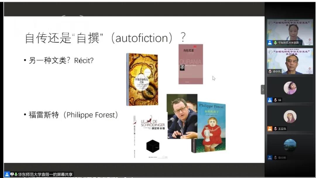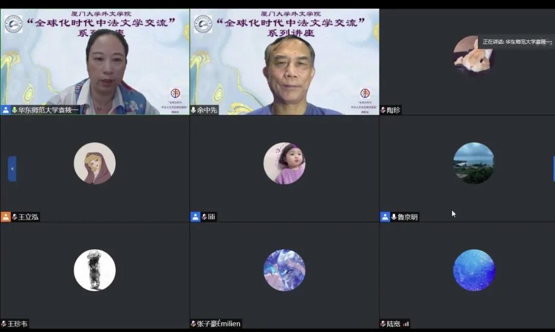 随着全球化浪潮的不断深入与横向拓展,中国逐渐走向世界舞台的中心。厦门大学外文学院 “全球化时代中法人文交流模式新探”课题组基于迄今为止中法之间人文交流的实践与认识,结合现今人文交流的亮点与趋势,推出“全球化时代中法文学交流”系列讲座,探究中法文学双向互动交流的具体实践与模式创新,以进一步加深中法文明的交融互鉴。2020年9月28日,华东师范大学外语学院院长、上海市作协副主席、翻译协会副会长袁筱一教授带来了“全球化时代中法文学交流”系列讲座的第一讲——《新世纪的法语文学:如果现代派错了呢?》,讲座由厦门大学外文学院法语系系主任鲁京明教授主持。此次讲座在腾讯会议展开,通过B站进行全球直播。袁筱一教授的讲解从容不迫、娓娓道来,又高潮迭起、妙语惊人,袁教授以其渊博的学识为我们带来了一场视野宏大、信息充沛的演讲,为我们展开了一幅新世纪法语文学的全景图。
