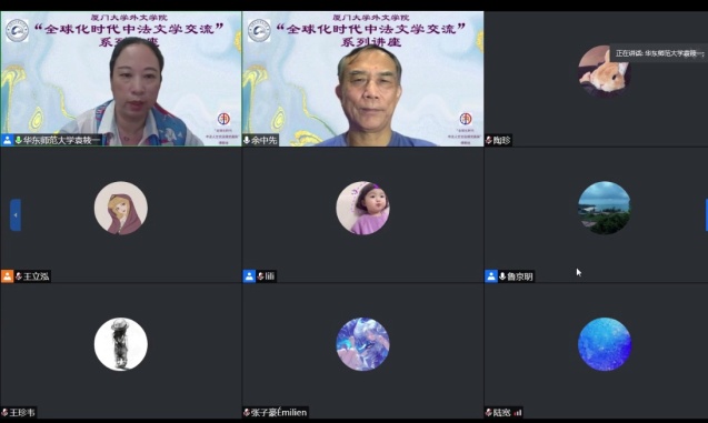 讲座的最后,袁筱一教授与、余中先教授、鲁京明教授共同探讨了新世纪法语文学的走向,并为听众们做了精彩的总结。在几位教授的梳理和启发下,与会的老师和同学们都收获颇丰。至此,由厦门大学外文学院“全球化时代中法人文交流模式新探”课题组举办的“全球化时代中法文学交流”系列讲座的第一讲圆满完成,在此过程中,1200多位听众汇聚云端聆听袁筱一教授的精彩演讲,收获满满、受益良多,且让我们共同期待下一讲的精彩继续!