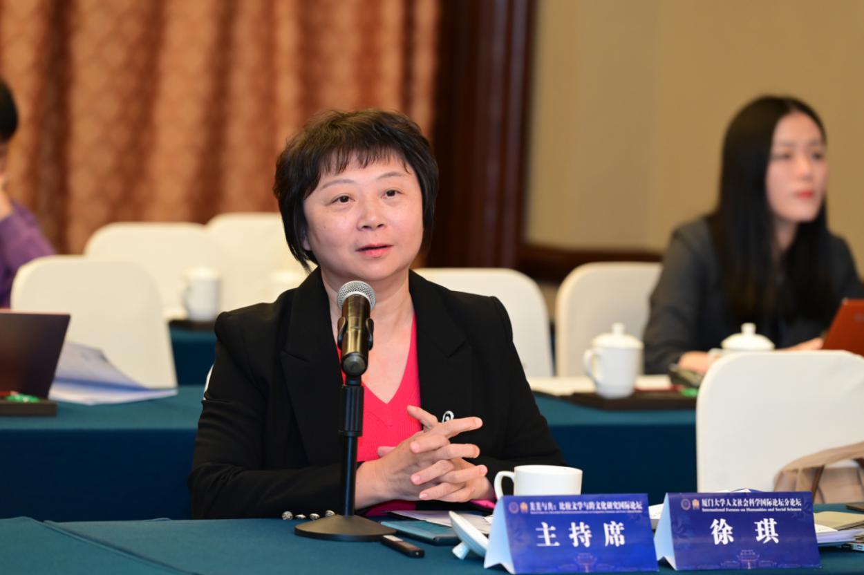 厦门大学外文学院副院长徐琪教授以《新文科背景下外国文学学科发展的“应变”与“求变”》为题,以详实的数据,向与会各位院长介绍了厦门大学外文学院文学方向教学科研团队的情况,指出综合性大学外语学科发展的困境,包括教师和学生的困惑、研究与教学的不对称性等,并指出通过大类招生改革、外国语言文学类创新实验班、“外语+会计/财务管理”等具体措施,对学生进行价值引领,使学生具备国际视野,促进教学与研究的同行并进。最后,她强调在新文科建设中,外语教育教学不能缺位。