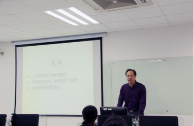 随后,吴老师与大家分享了自己读冯友兰“贞元六书”的心得,结合自身经历,阐述了对自然、功利、道德、天地等不同人生境界的独到体会。吴老师指出人生境界不是单纯的过渡发展,也会受时代和人生阶段的影响。“要把对学问的认识、对社会的认识和对现实的认识挂上钩,想要把学问做大,看到学问的价值和意义,就要把它放在大历史背景下”。吴老师还提醒同学们注意学术研究与意识形态间的紧密关系,认为学术研究经历了西欧化,现代化到如今全球化的发展历程,同时指出了大历史背景下东西方学术研究的不同。西方以世界为对象,而中国学问则以天下为对象。