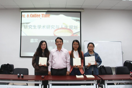 一个半小时很短,说不完院长的多彩人生,一个半小时也很长,长到受益终身。张龙海院长人生阅历丰富、和蔼可亲,他一一解答大家的问题,与同学们一起探讨人生之路,给涉世未深的外文学子指明了前进的方向。在此起彼伏的欢声笑语中,活动也接近了尾声。本期“院长Coffee Time”不仅解决了研究生们的一系列学习或生活的疑惑,更是拉近了院长和同学们之间的距离,让同学们进一步感受到院长的魅力。长期以来,外文学院坚持举办“院长Coffee Time”活动,打造师生之间有效沟通与良性互动的平台,为外文学院进一步建设和谐师生关系、提高研究生科研创新能力创造了良好条件。