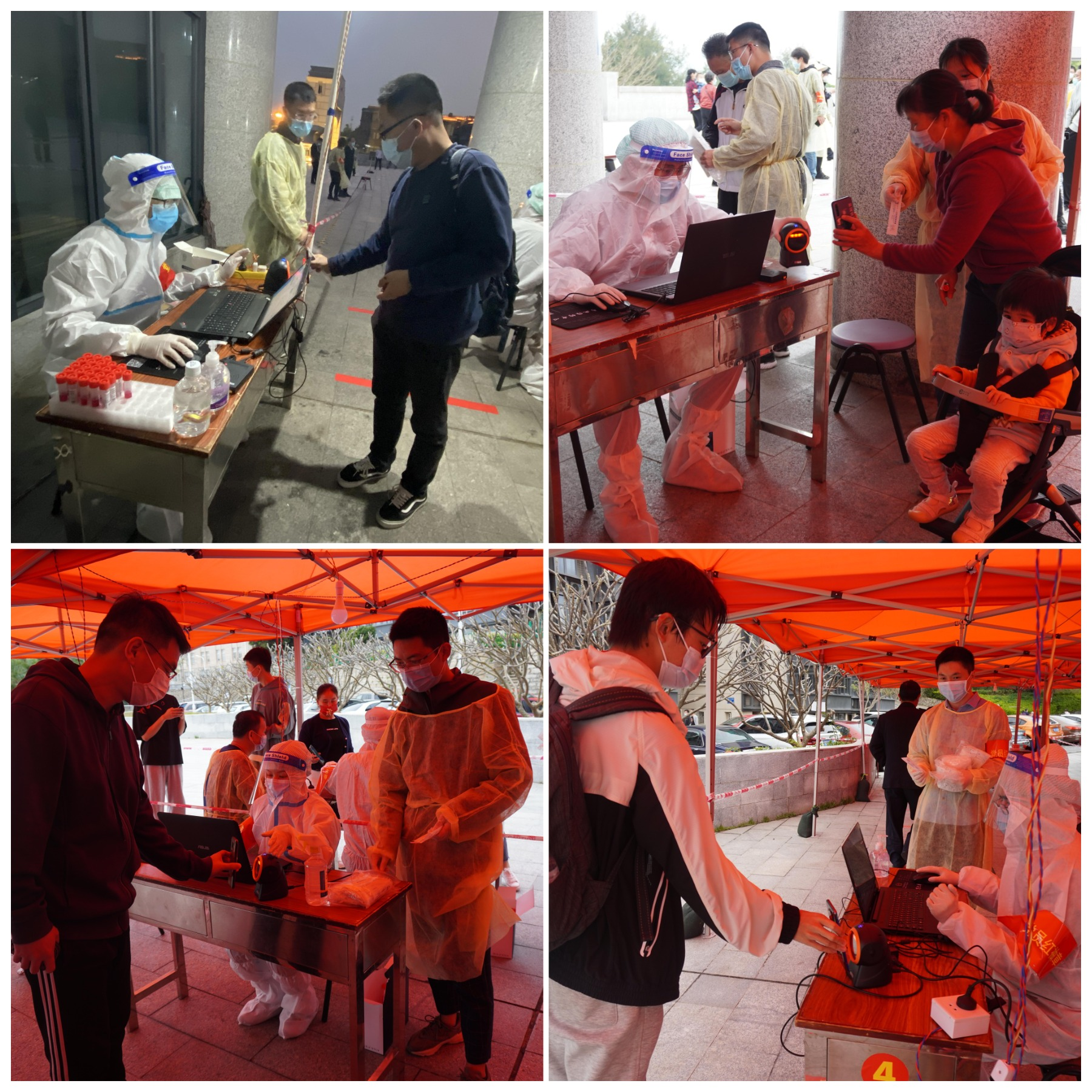 引导员分布各处,耐心提示大家备好登记码或身份证、保持安全间隔,确保检测安全。在大家共同努力下,在师生群众配合下,四个检测通道井然有序,高效运转,4小时共完成2474人次的检测工作。