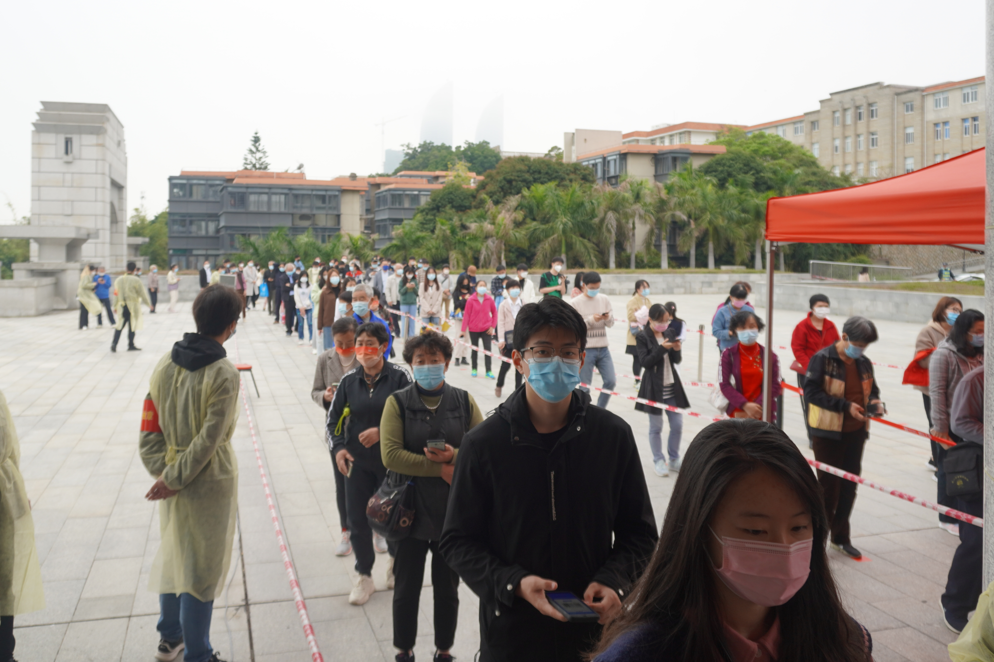 3月21日下午,白城检测点开展第二次核酸检测,战疫“集结号”再次吹响。检测点负责人外文学院党委书记徐琪、材料学院党委书记刘立荣带领安保、信息、网络等工作组和来自思明校区应急志愿服务队、外文学院、经济学院的22位志愿者,把使命扛在肩上,把群众放在心上,把各项工作落到实处细处。校党委副书记徐进功再次到白城核酸检测点关怀指导工作,学校应急管理办公室副主任、学校办公室副主任陈锦华陪同。