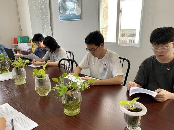 随后,支部全体党员结合自身感受交流了学习心得。魏淇宁同志表示,习近平总书记重要讲话里提到“要将人生理想融入党和人民事业之中”,这让她更加深刻地理解思政课中所学的“要将个人理想融入社会理想”。她热衷于参与志愿活动,也曾积极参与到家乡团县委的“返家乡”活动中,在为社会、为家乡奉献的实际行动中,实现个人理想,并为中华民族伟大复兴的社会理想贡献力量。