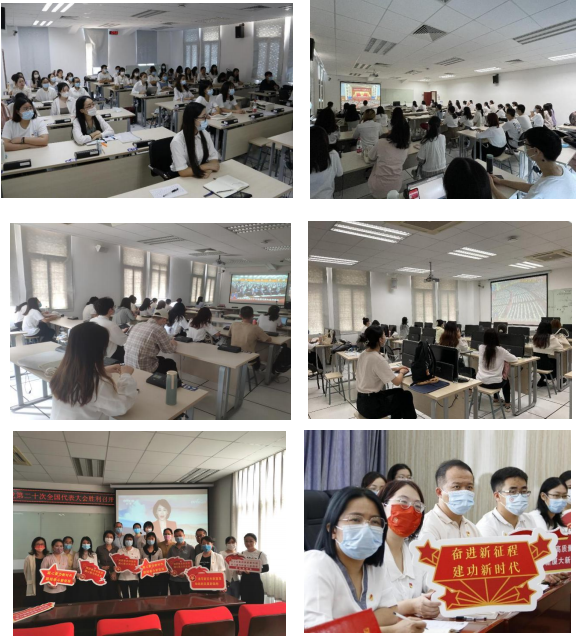 学院党委在德贞楼515室设立主会场,同时,利用报告厅和教室等空间,设立了10多个分会场,组织院党委班子成员、师生党员代表、第88期党校学员代表、青年团员代表等260余人收听收看直播。