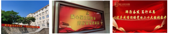 大会召开前,学院精心布置院楼内外横幅、电子屏,充分做好准备,营造了喜迎盛会的浓厚氛围。