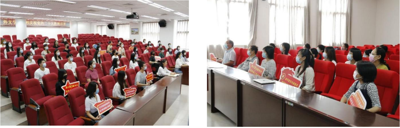 党的二十大前承非凡十年的非凡功绩,后启全面建设社会主义现代化国家新征程,科学谋划了未来5年党和国家事业发展的目标任务和大政方针,具有重要意义。习近平总书记的报告振奋人心、鼓舞斗志,极大地统一思想、凝聚力量。在聆听习近平总书记的报告后,外文学院党委召开学习贯彻党的二十大精神座谈会,与会师生踊跃发言,畅谈感想,现场气氛十分热烈。