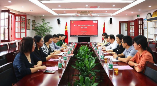 苗瑞丹谈到,落实“两个全面”,关键在党,关键要进一步发力,做好基层党建工作,打造党建工作品牌,提升党建工作实效。两院可充分挖掘本学科教学科研工作中的思政元素,围绕中华文化海外传播等方面开展合作。