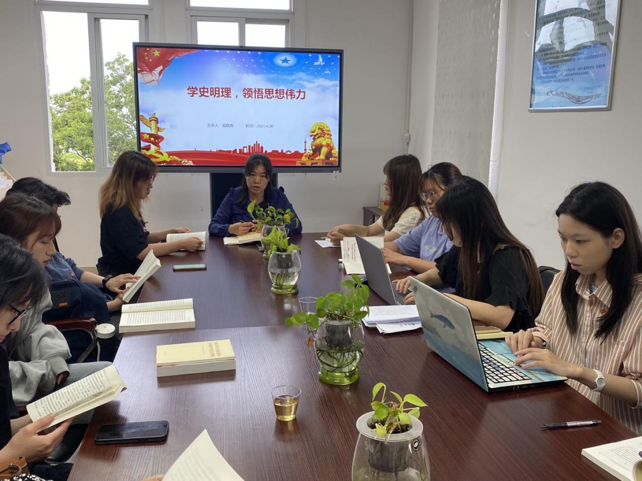 最后,支部书记戴晓燕同志进行总结。她谈到,历史是最好的教科书,也是最好的清醒剂。学史,重在明理,我们要把深刻的哲理、朴素的道理讲清楚、思明白,清楚我们从哪里来,将要往哪里去。“以人为鉴,可以知得失,以史为鉴,可以知兴替”,作为新时代党员,我们要响应习近平总书记的号召,做到学史明理、学史增信、学史崇德,学史力行,同时也要充分发挥主观能动性,将理论知识与实践相结合,让历史经验在新时代焕发新的生机与活力。