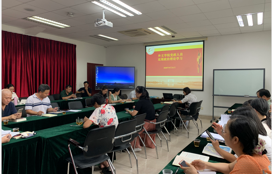 2020年9月21日下午,外文学院五个系部和学院办公室分别组织开展新学期第一次双周政治理论学习,围绕习近平总书记教育重要论述和习近平总书记教师节重要寄语精神等内容进行学习研讨。