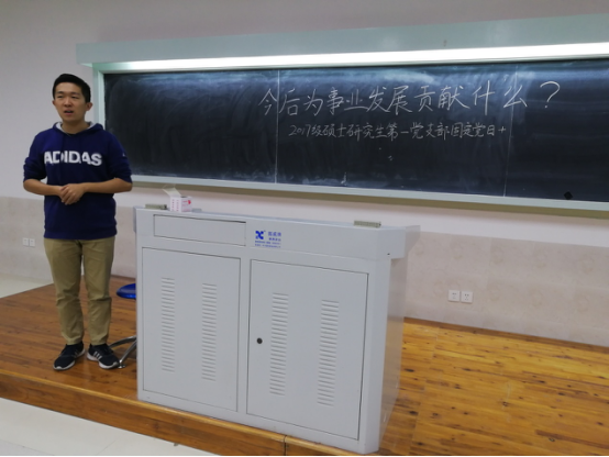 2019117日晚,2017级硕士研究生第一党支部于海韵学生公寓教学楼406围绕“不忘初心、牢记使命”主题教育系列之“今后为事业发展贡献什么”的主题开展了本学期第四次“固定党日+”活动。支部成员通过观看视频、分享个人求职经历、谈感悟,敞开心扉思索个人与今后事业发展的关系,扎根新时代,奋进新征程。本次活动由云程彬同志主持,陈书英同志进行现场记录,主要议程有两项,分别为观看《感动中国》节目片段以及结合片段就求职及职业规划展开讨论。