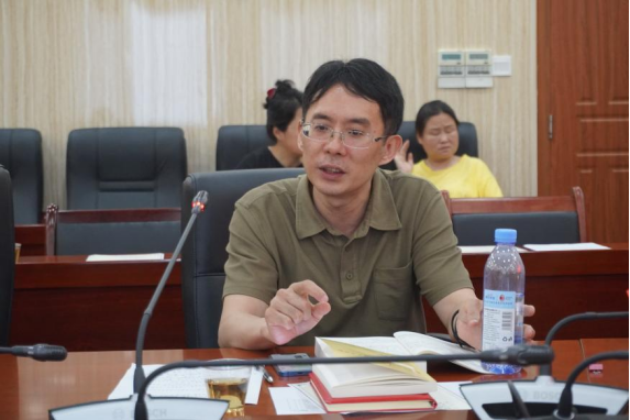 学院党委委员、副院长戴鸿斌作重点发言。他分享了自己在提高学生文化素养、增强跨文化交流能力方面的做法,比如推动开设《中国文化概要》必修课、将文化元素巧妙融入课堂教学、鼓励学生将科研课题与中国文化结合等。他强调,外语学科肩负融通中外、对外传播的使命,要努力结合教学科研,讲好中国式现代化的故事,增强中华文明的传播力和影响力。
