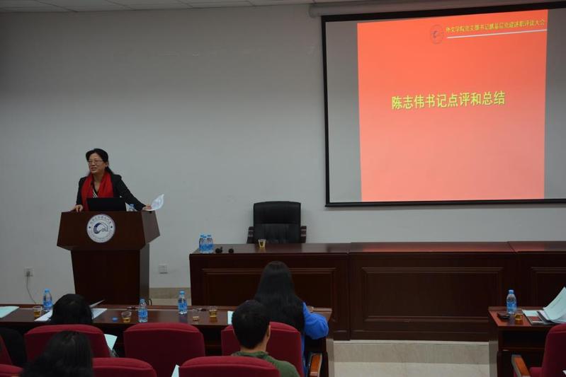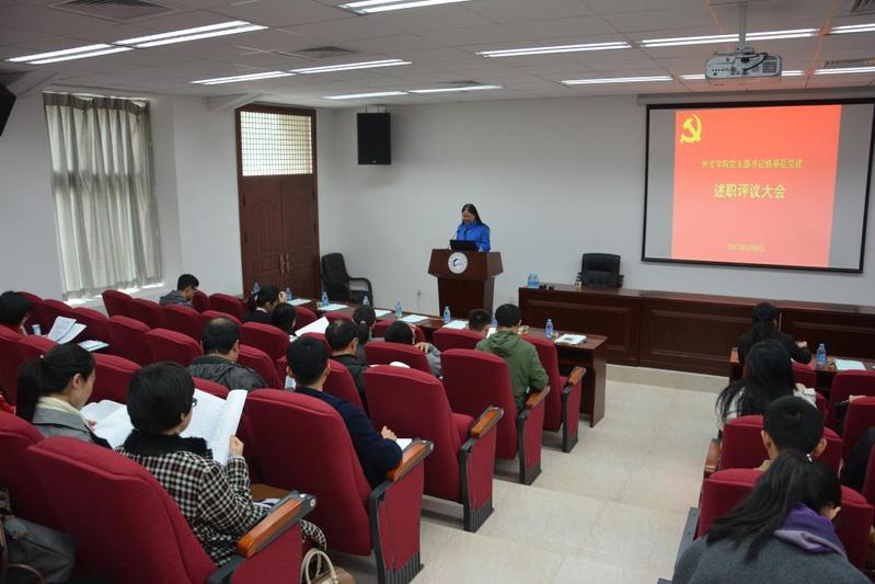 3月8日下午3点,外文学院在学院南光三112报告厅举行2016年度党支部书记抓基层党建述职评议大会,参加会议的有学院党委成员,学院关工委负责人,学院部门工会、团委、妇委会负责人和代表,民主党派代表,党支部书记、委员,党员代表90人。大会的议程共两项,第一项议程是由部分支部书记进行现场述职,陈志伟书记点评和总结;第二项议程是由在场的领导、嘉宾和各支部师生党员对现场述职的支部书记进行评议,填写评议表。