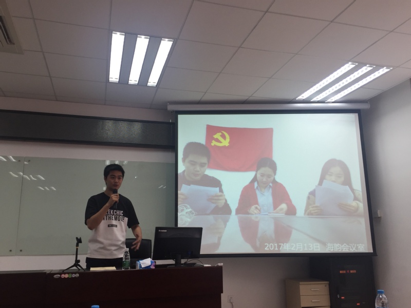 随后,2014级研究生第二党支部书记李宝龙结合自己近三年来的支部书记工作经验和心得与同志们做了分享交流,他从党员发展、立项活动、支部记录等方面回顾了支部建设日益扎实,工作成效日益凸显的历程,号召与会的学生支部书记和支委们主动工作,创新方式,响应群众呼声,凝聚党内外合力,共同完成上级布置的各项工作任务。