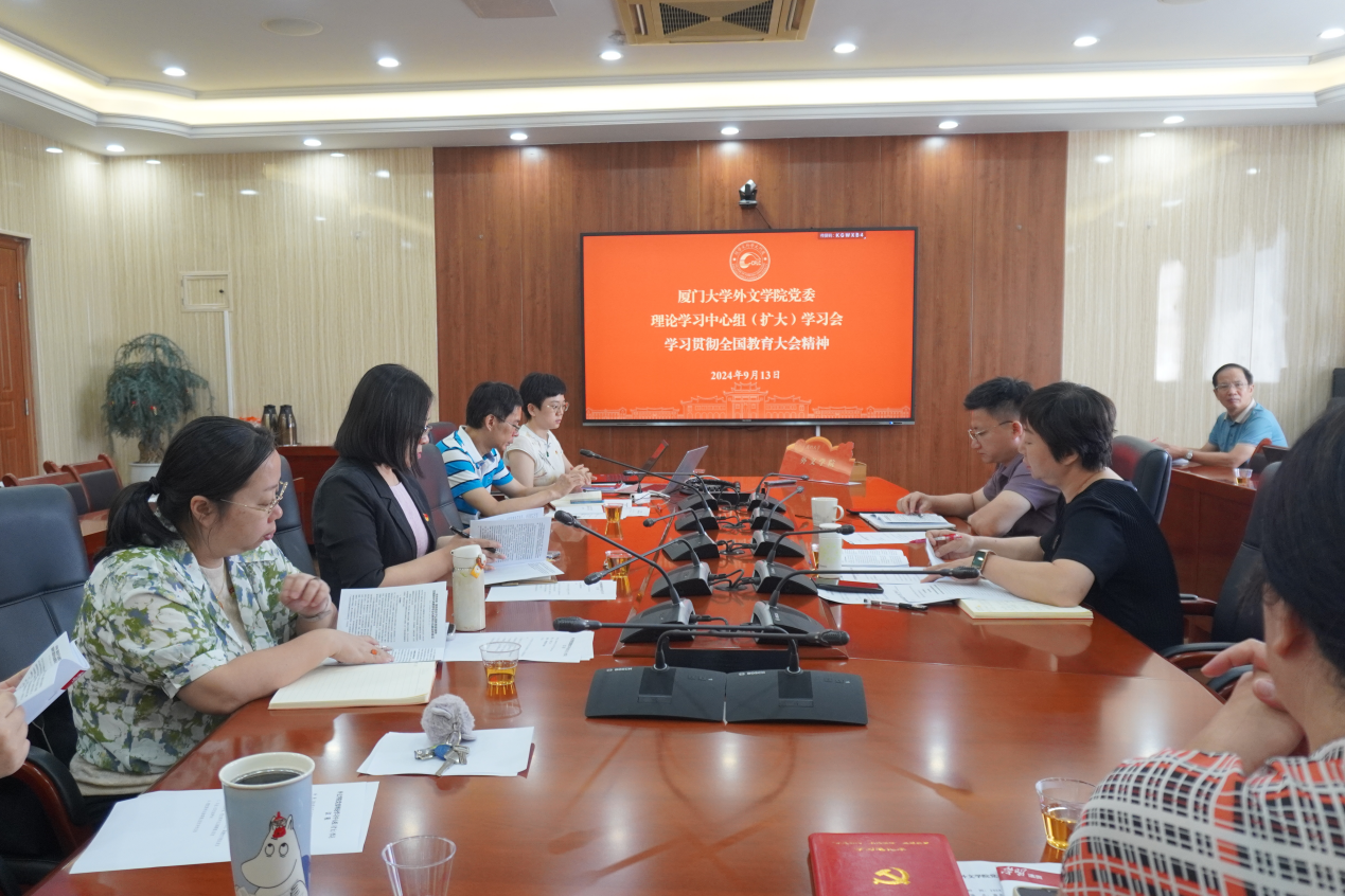 9月13日,外文学院召开党委理论学习中心组(扩大)学习会,专题学习全国教育大会精神。学院党委委员、辅导员、师生党支部书记和副书记参加会议,会议由学院党委书记徐琪主持。