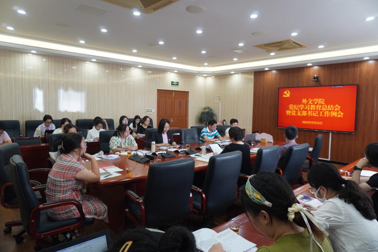 9月13日,外文学院召开党纪学习教育总结会暨党支部书记工作例会。学院党委委员,师生党支部书记、副书记参加会议。